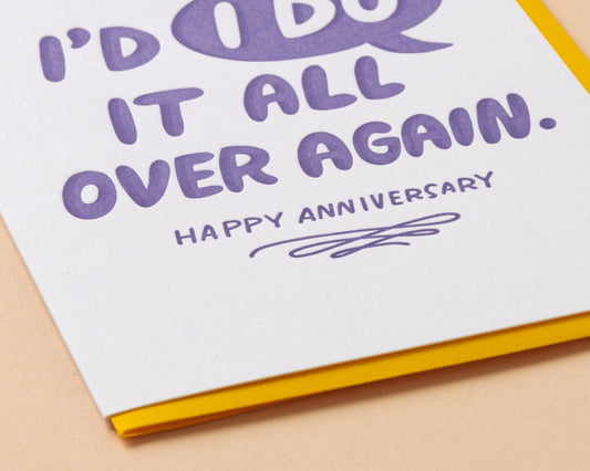 And Here We Are - I'd "I Do" It Again Anniversary Letterpress Greeting Card