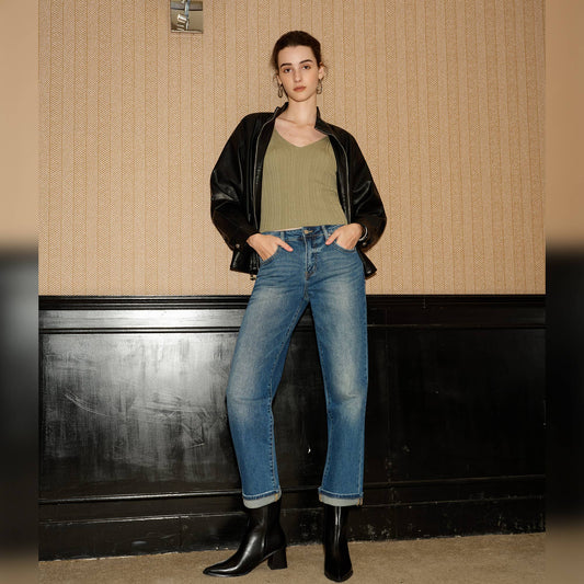 BAYEAS - HIGH RISE RELAXED STRAIGHT DENIM WITH RAW HEM