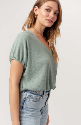 Project Social T - Cerise V-Neck Bubble Rib Tee