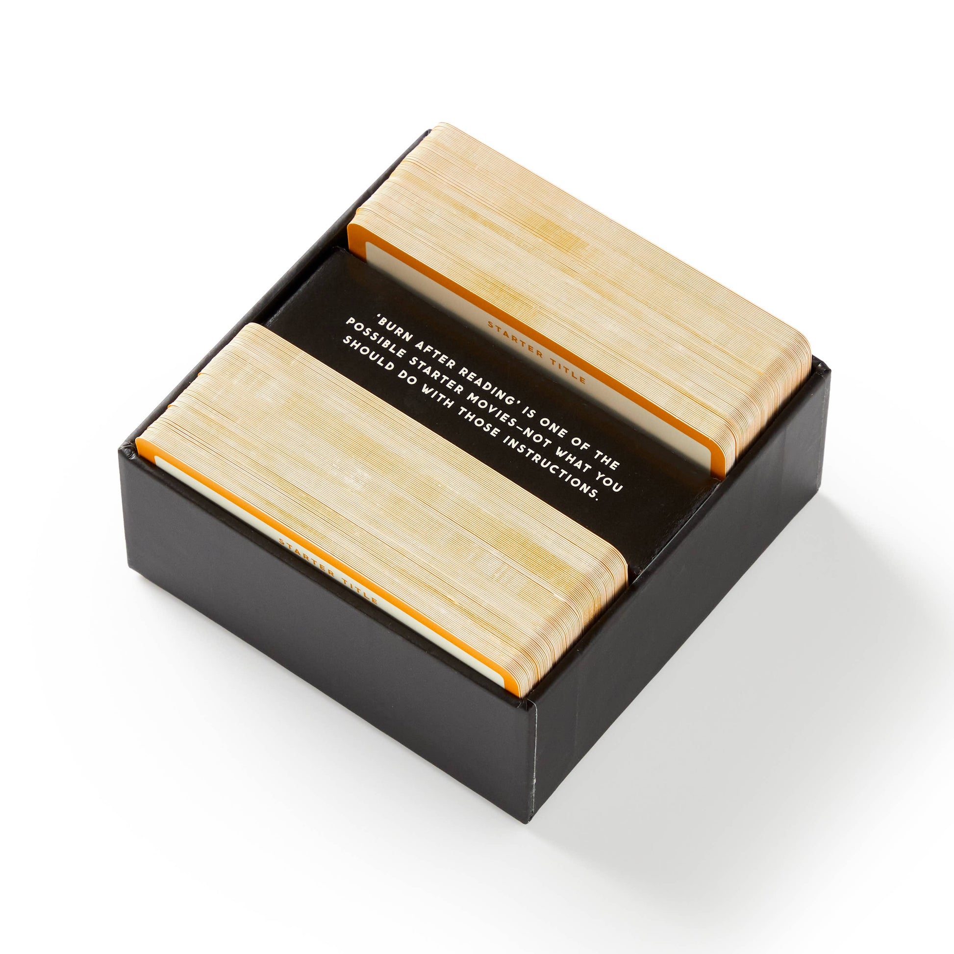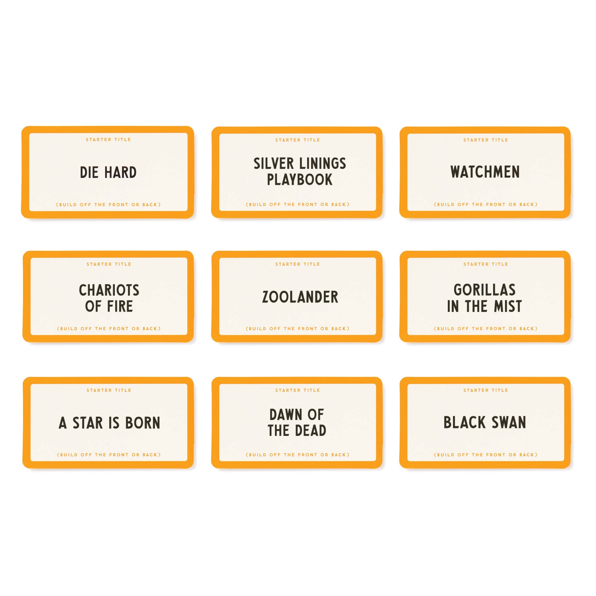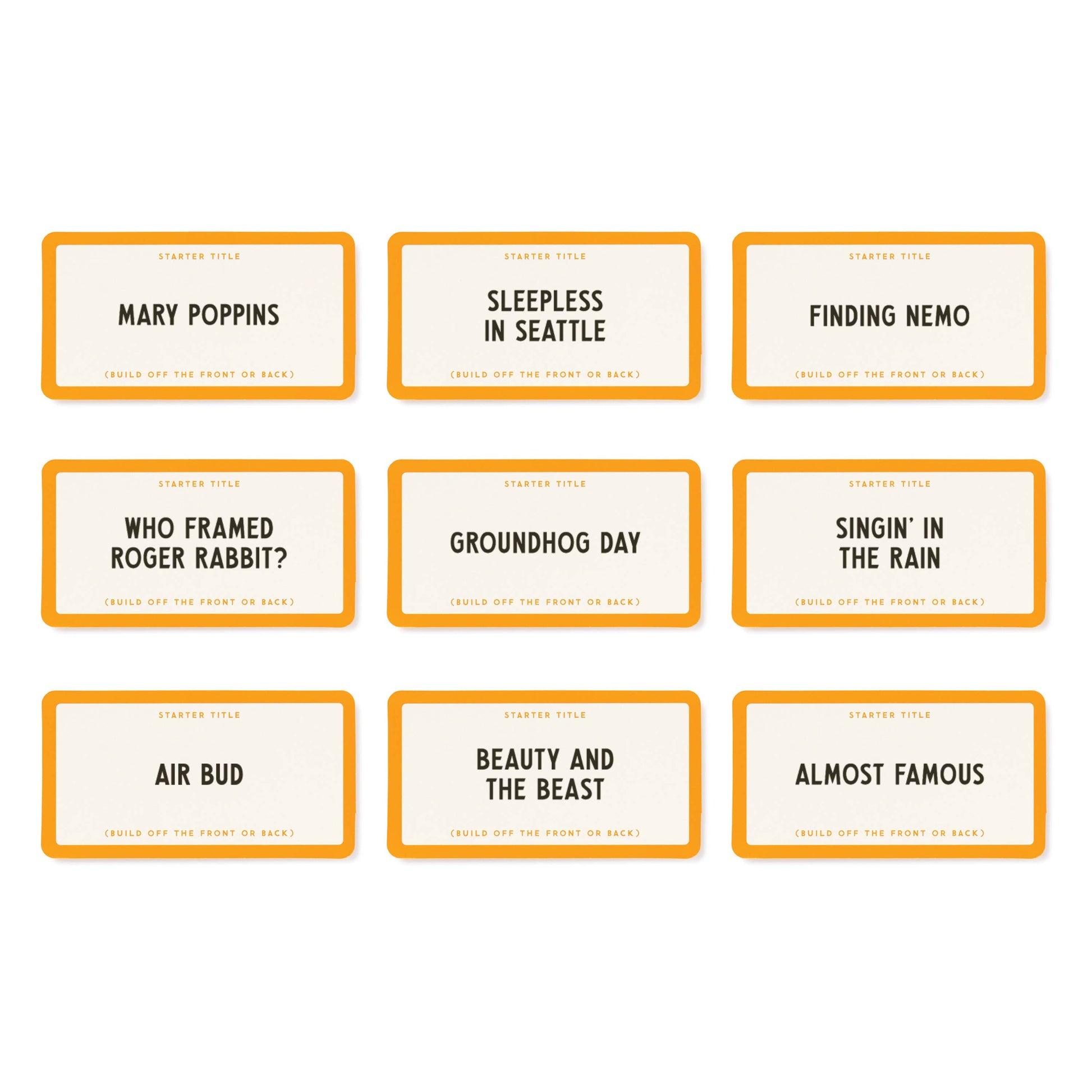 WORKING TITLE GAME - Discover a game that puts your movie knowledge—or just your awareness that a movie exists—to the test. The rules are straightforward. Draw a card with the name of a popular film, and players take turns extending the title into the longest run-on sentence possible by adding movies to the beginning or end. For instance, if the starting movie is Mary Poppins, the next player might say There's Something About Mary Poppins. Then, the following player could add There's something About Mary Popp INSide Out, and so forth. If you can't continue the sequence, you're out!
