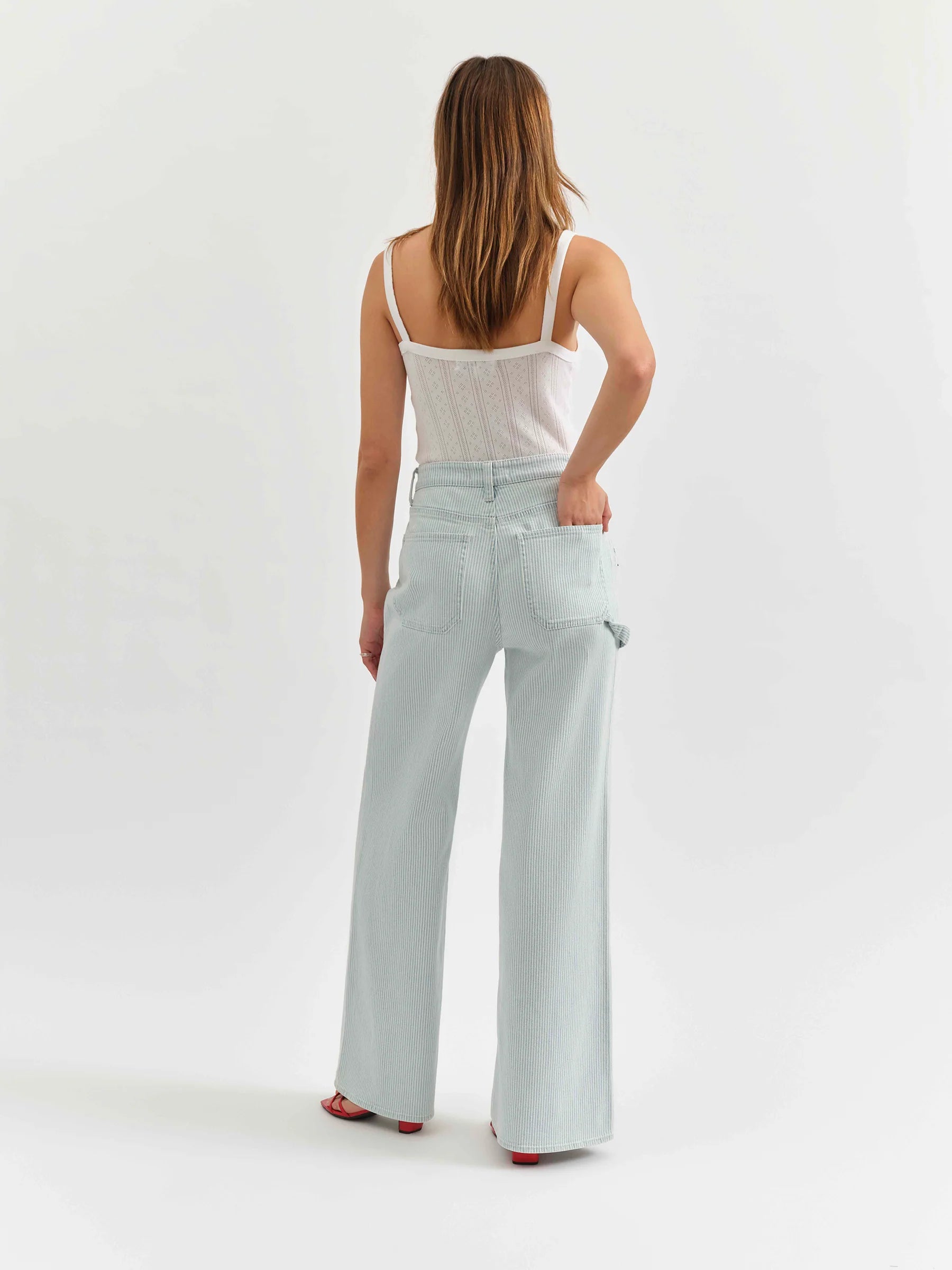 Daze Far Our Utility High Rise Wide Leg Jeans - Blue Bell Stripe