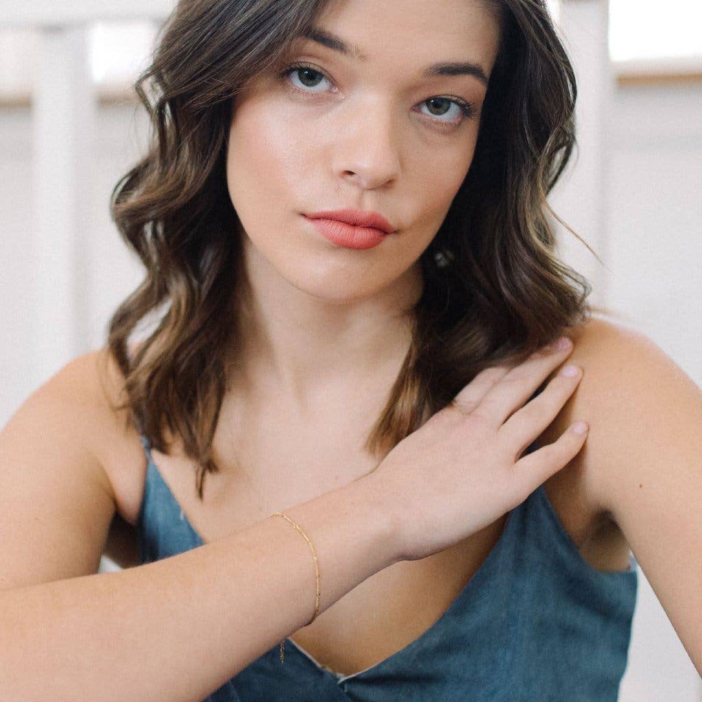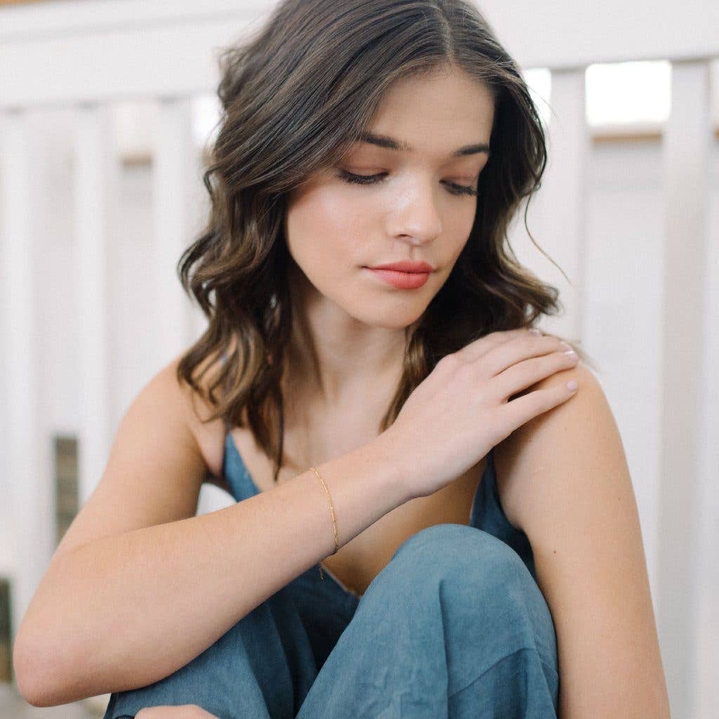 This delicate figaro chain lends just the perfect amount of shimmer against your wrist.