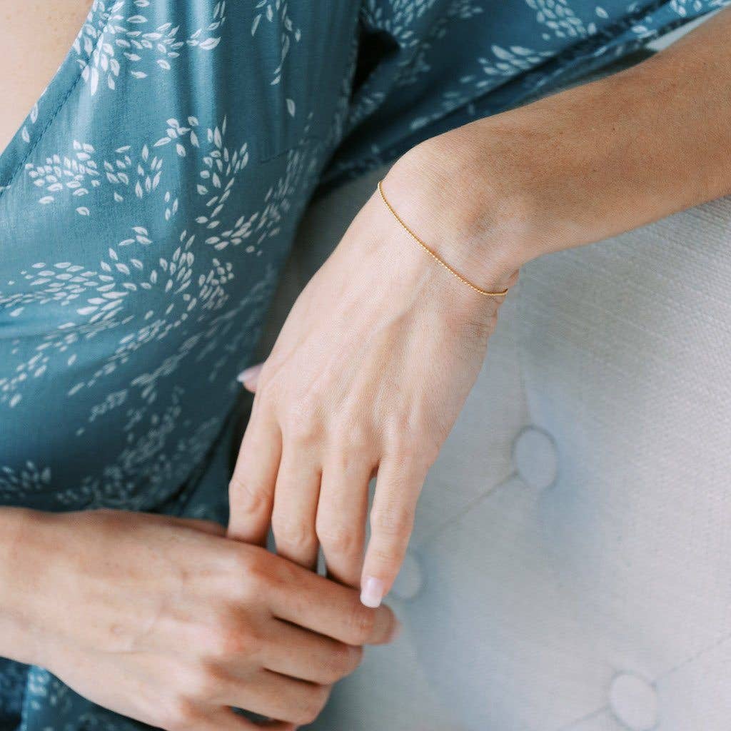 A classic, simple bracelet in a whisper thin ball chain. Gorgeous worn solo, stacked in multiples, or stacked with your favorite bracelets.