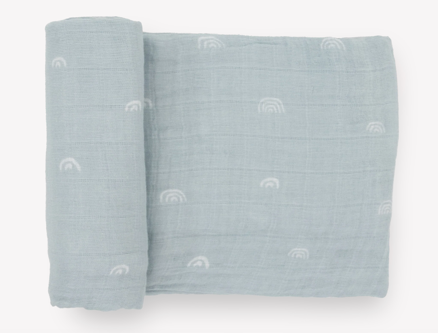 Little Unicorn Cotton Muslin Swaddle Blanket - Blue Rainbow