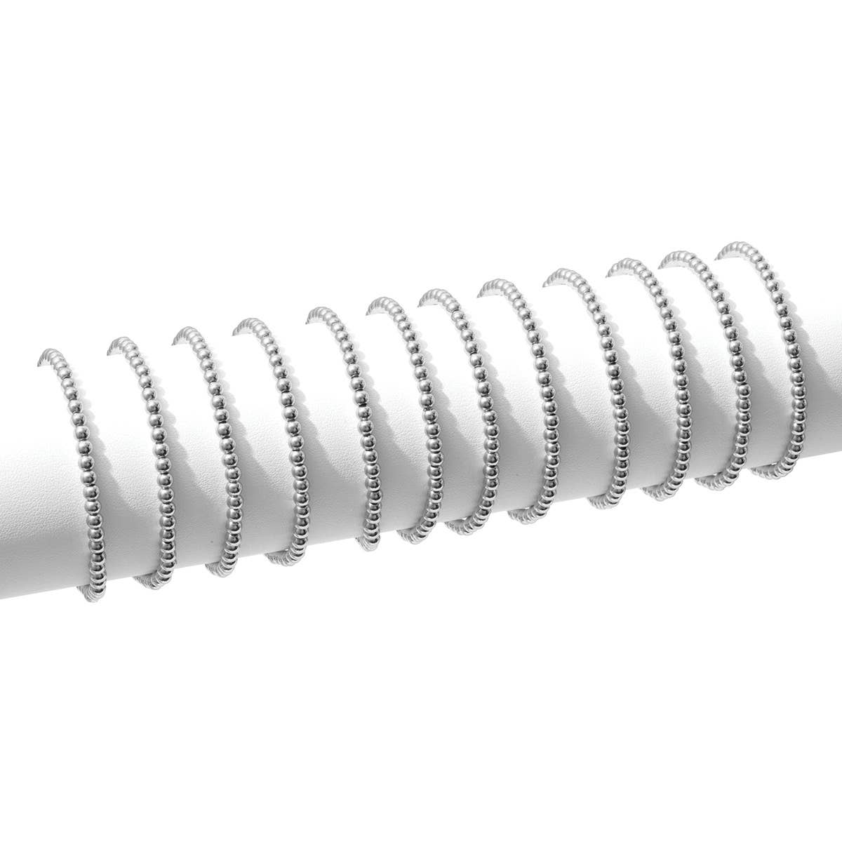 Splendid Iris - 4mm Bead Stretch Bracelets - Silver