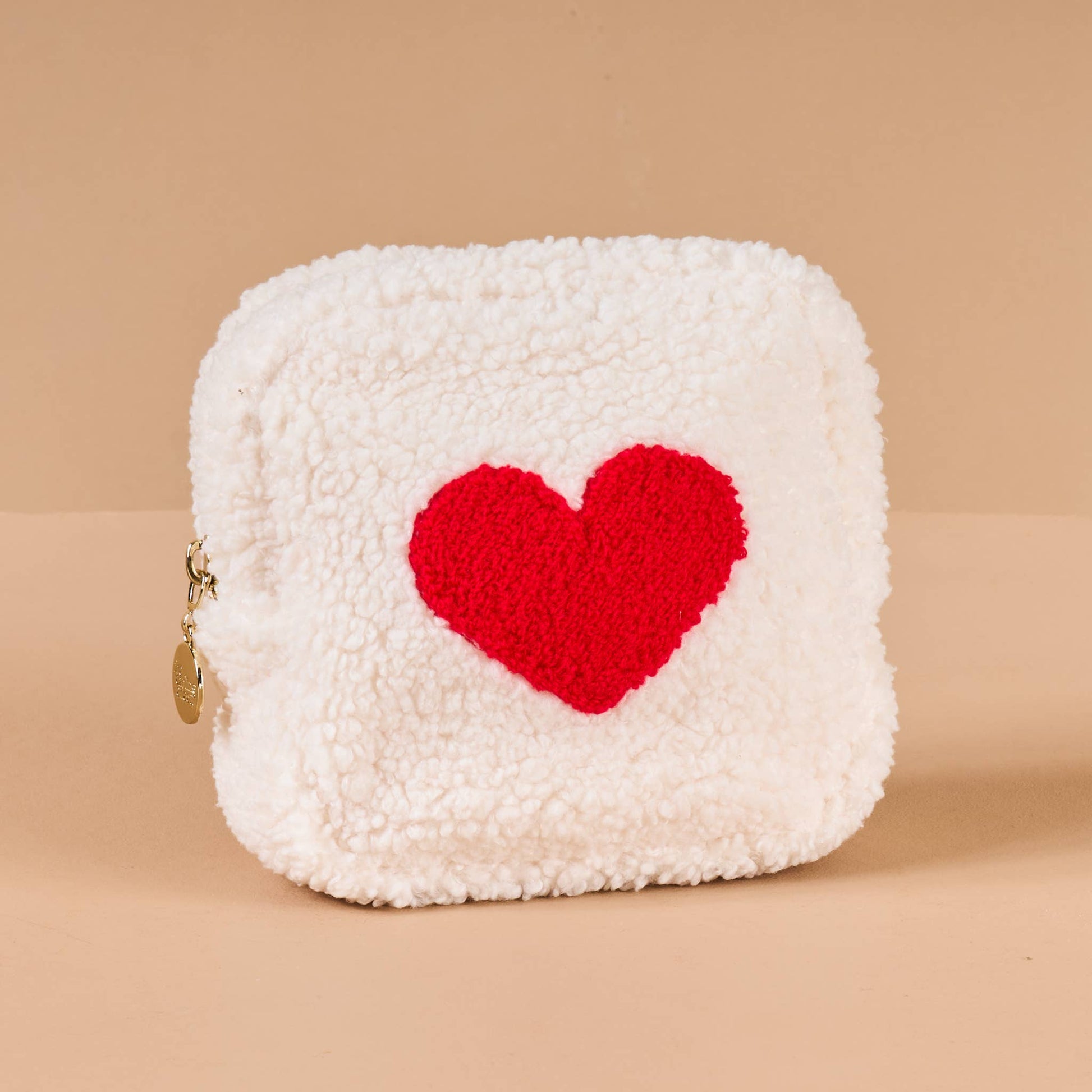 The Darling Effect - Square Teddy Pouch-Cream with Red Heart