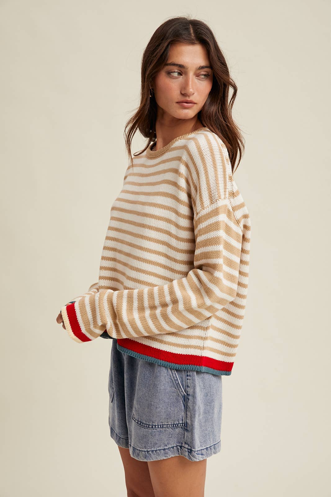 STRIPED DROP SHOULDER SWEATER